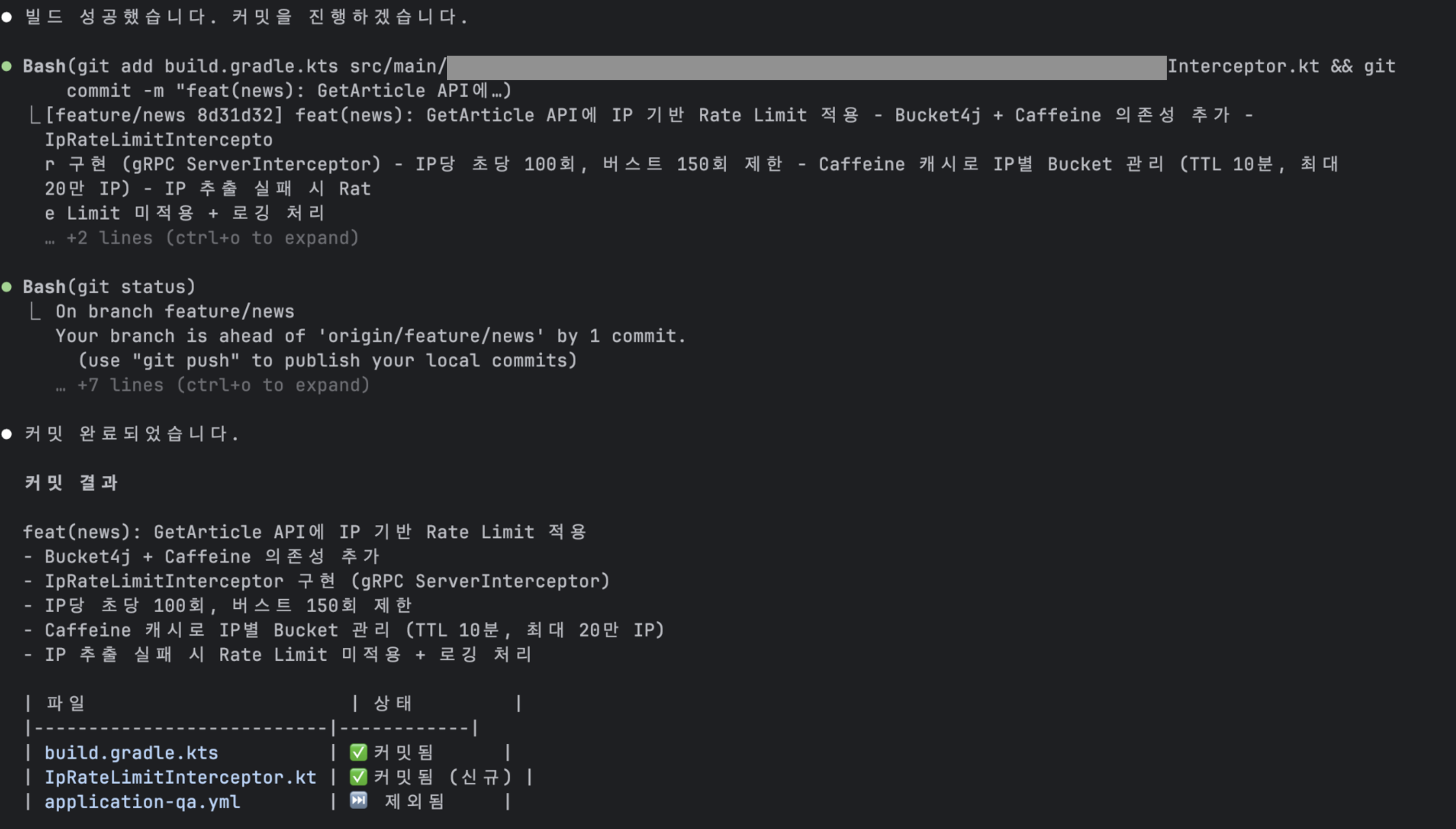 **주의**: news 레포지토리만 push 대상 (grpc-idl 서브모듈 제외)
