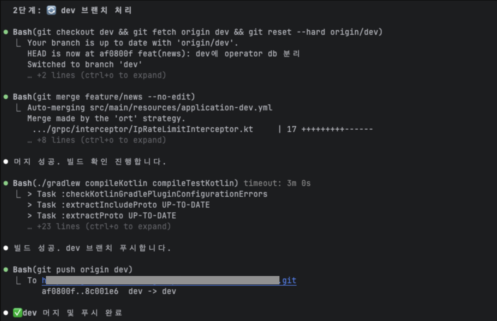 반복적이고 지루한 작업을 AI에게 위임하여 개발자는 비즈니스 로직에 집중할 수 있습니다. 특히 서브모듈 처리나 다중 브랜치 배포 같은 복잡한 작업에서 효과가 큽니다.